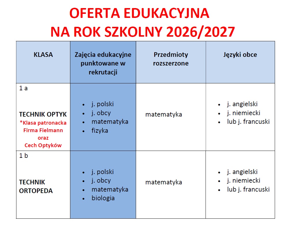 Ogłaszamy nabór na rok szkolny 2026/2027 do klas pierwszych technikum: